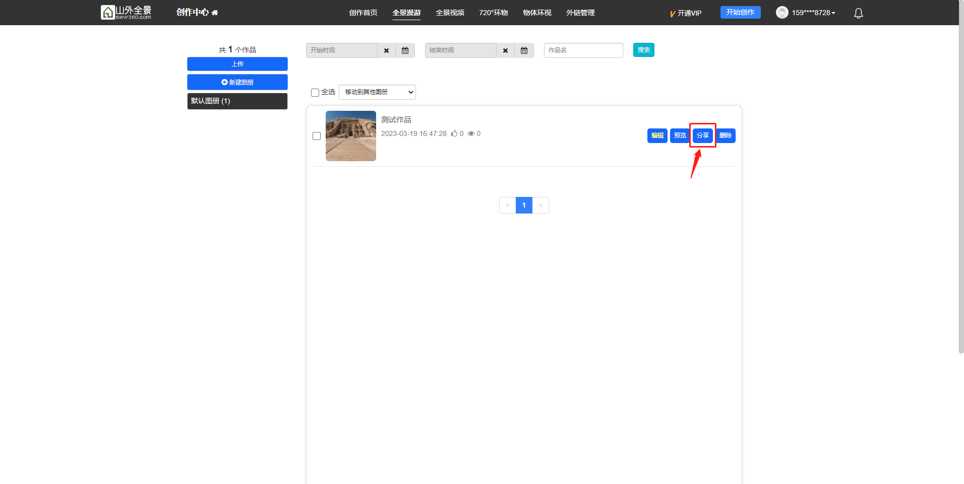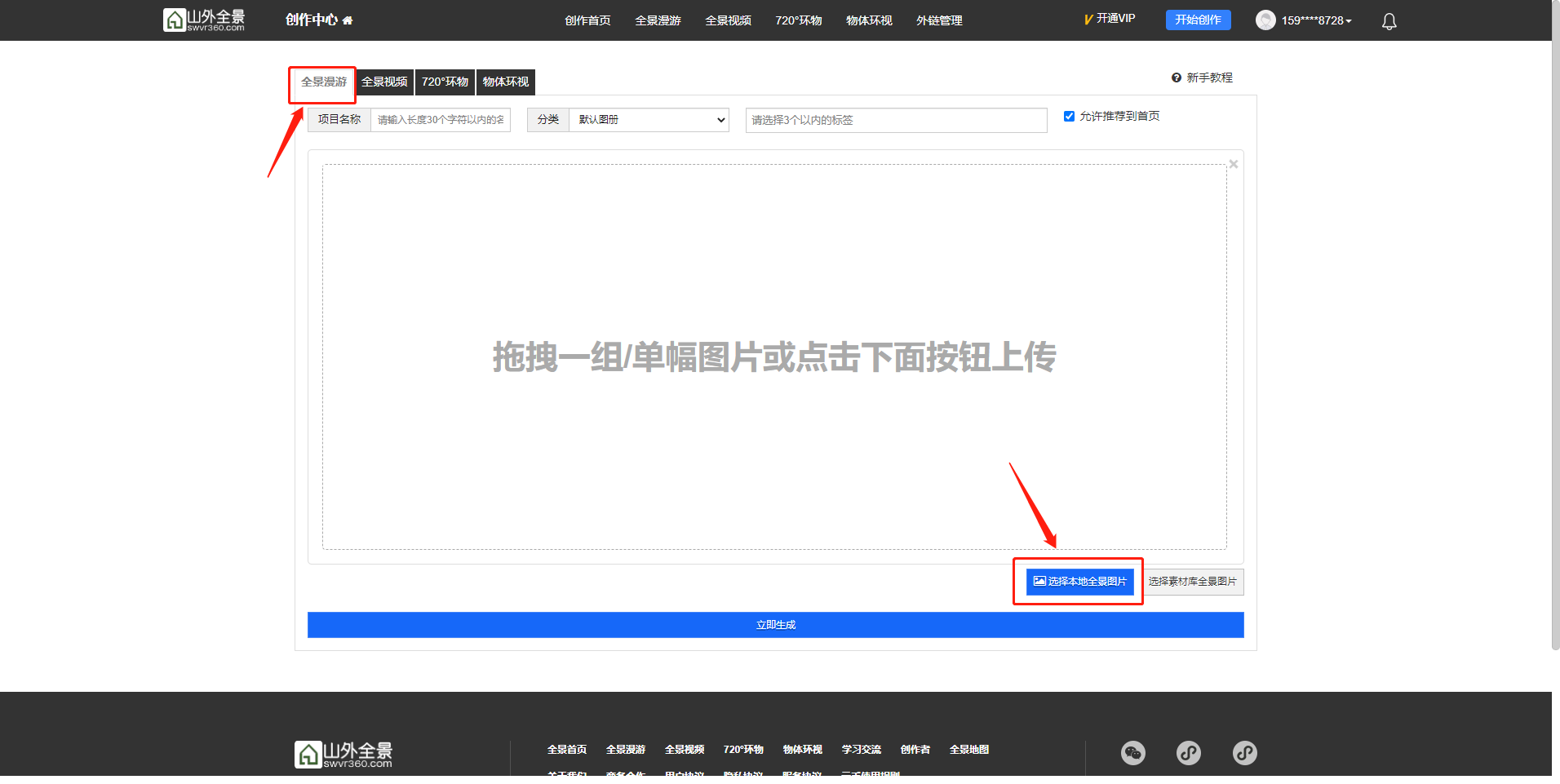 在 山外全景云 注册账号并登陆后,即可发布作品(建议使用谷歌浏览器)。