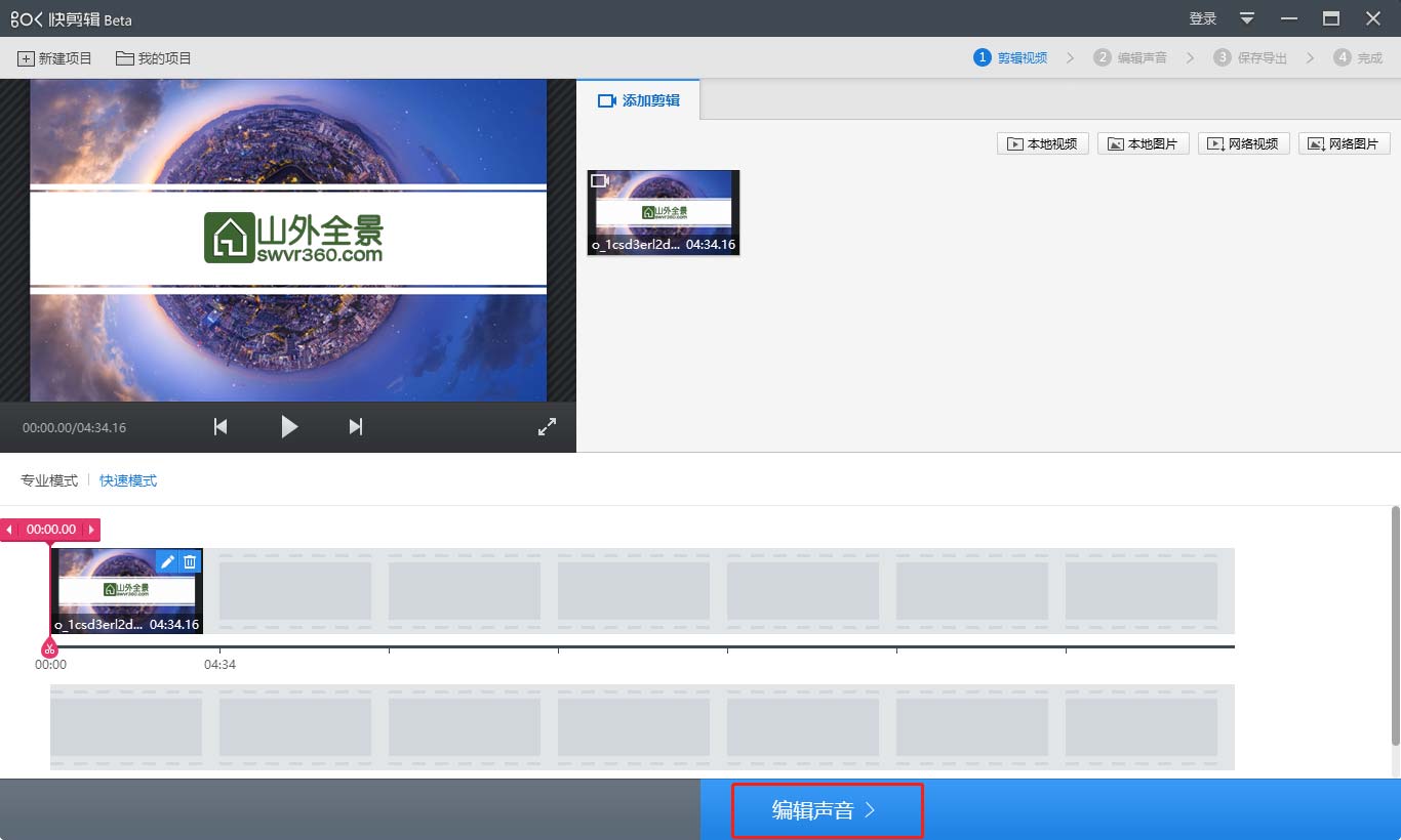 山外全景云漫游作品中支持本地视频播放,在【管理首页】-【素材管理】-【视频】中添加本地视频,后就可以在方案内引入视频方案。
