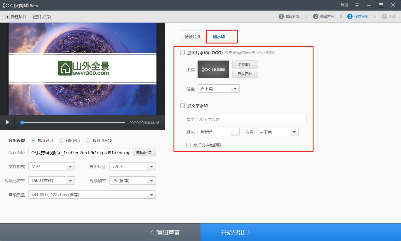 右侧【加水印】可去除快剪辑水印,或添加自己的水印。